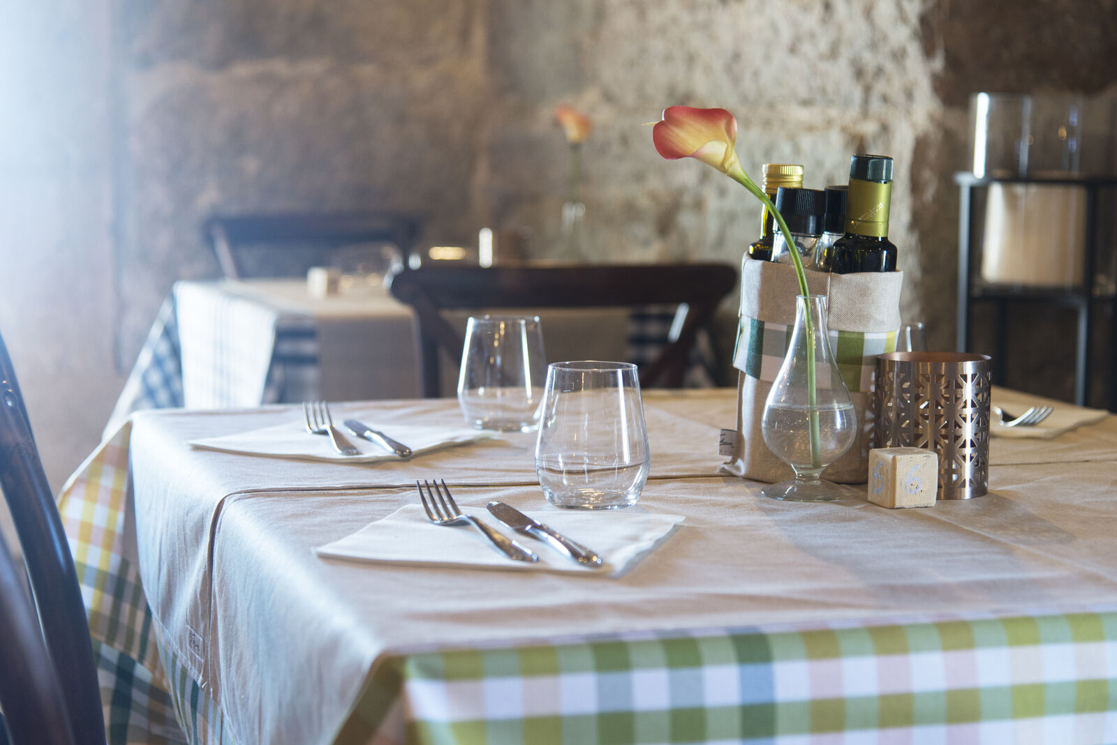 La sala principale è calda e luminosa e le particolari volte in pietra creano un’atmosfera intima e affascinante. Il gioco del colore è affidato al tovagliato, qui il quadrettato tipico dei locali tradizionali viene enfatizzato da tinte colorate tutte diverse. Alle pareti, elementi legati al mondo delle due ruote richiamano il mondo del ciclismo, la nostra passione.